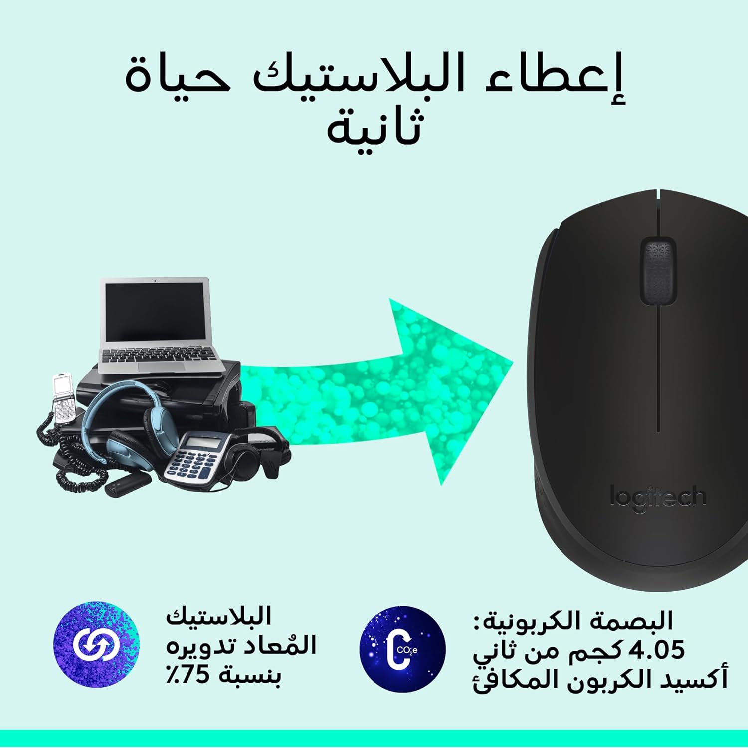 الآن هو لاسلكي. مع الماوس اللاسلكي M171 من لوجيتك، اختر موثوقية السلك مع راحة اللاسلكي - ونطاق 10 متر (33 قدم) - بفضل تقنية لوجيتك المتقدمة اللاسلكية بتردد 2.4 GHz. يعمل هذا الماوس ذو الأسعار المعقولة لمدة 12 شهرًا * على بطارية ايه ايه واحدة. الإعداد بسيط - فقط قم بتوصيل جهاز الاستقبال اللاسلكي الصغير بفتحة USB. لا توجد متاعب في الاقتران أو تثبيت البرامج، كما أن M171 متوافق مع ويندوز وMac وكروم. *قد يختلف عمر البطارية بناءً على استخدامك.